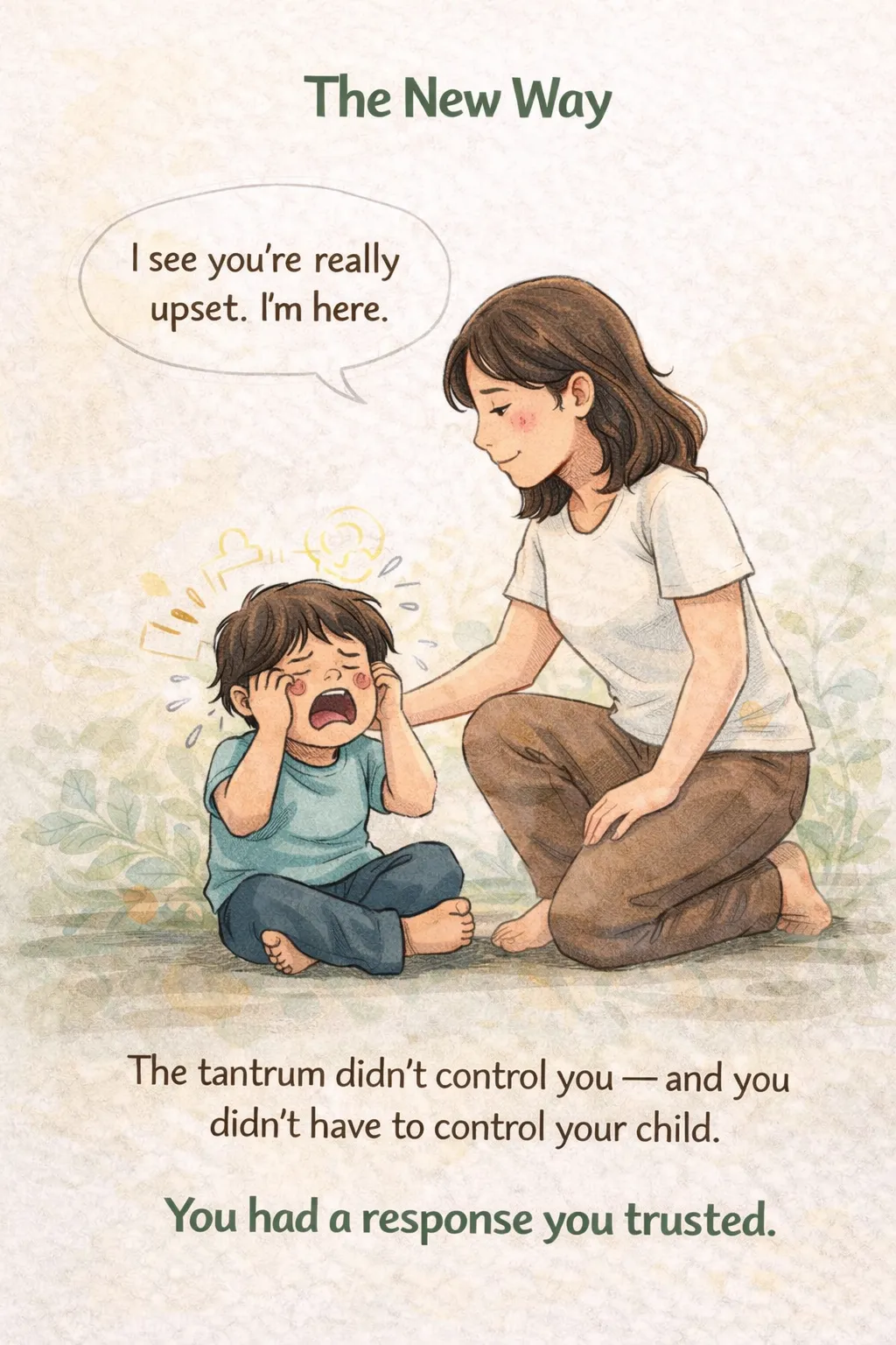 A tantrum starts, and instead of panicking, you pause. You don’t have to decide what to do — you already know. The boundary stays firm. Your voice stays steady. You stop explaining, fixing, and negotiating, and you simply respond.
